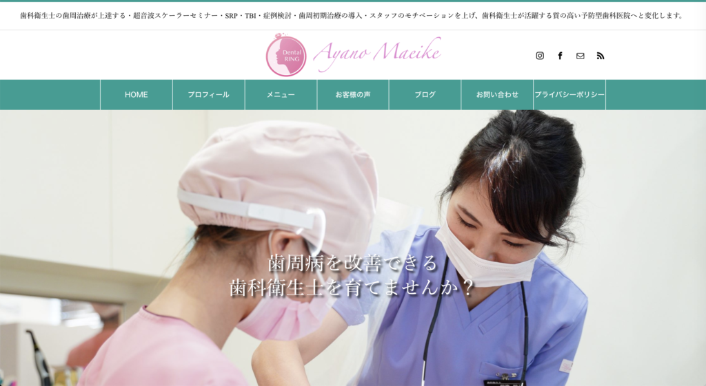 【HPグループ講座4期受講】 歯科衛生士 人財育成コーチ 前池綾乃さん 自分でホームページを作らないと、表現したい文章や写真が他人では難しいと考えていたので、大満... -