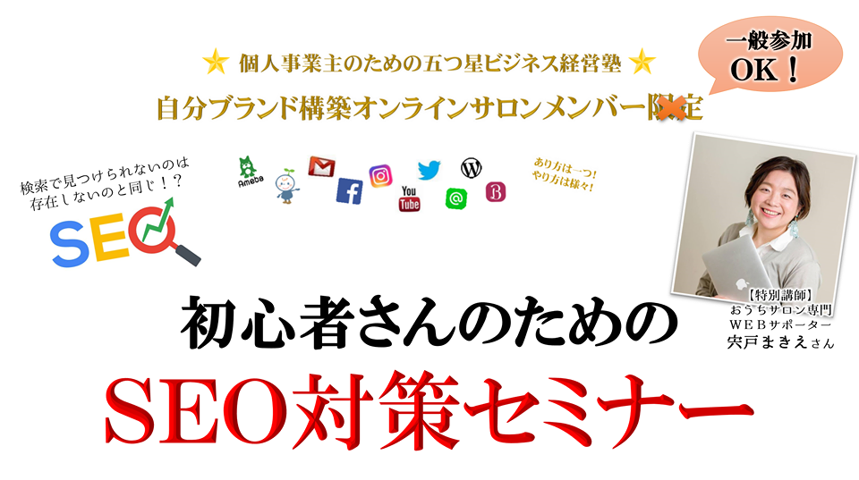 「初心者のSEO対策セミナー」4/26(金)10時〜 一般参加OKです♪